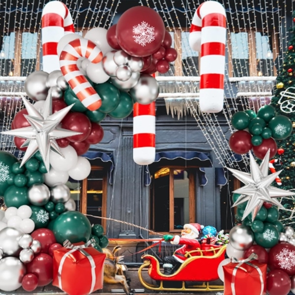 Create a magical holiday backdrop with red, green, white, and silver balloons — perfect for Christmas parties, birthdays, or winter wonderland events.