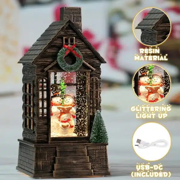 Lighted Snow Globe Lantern with Swirling Glitter